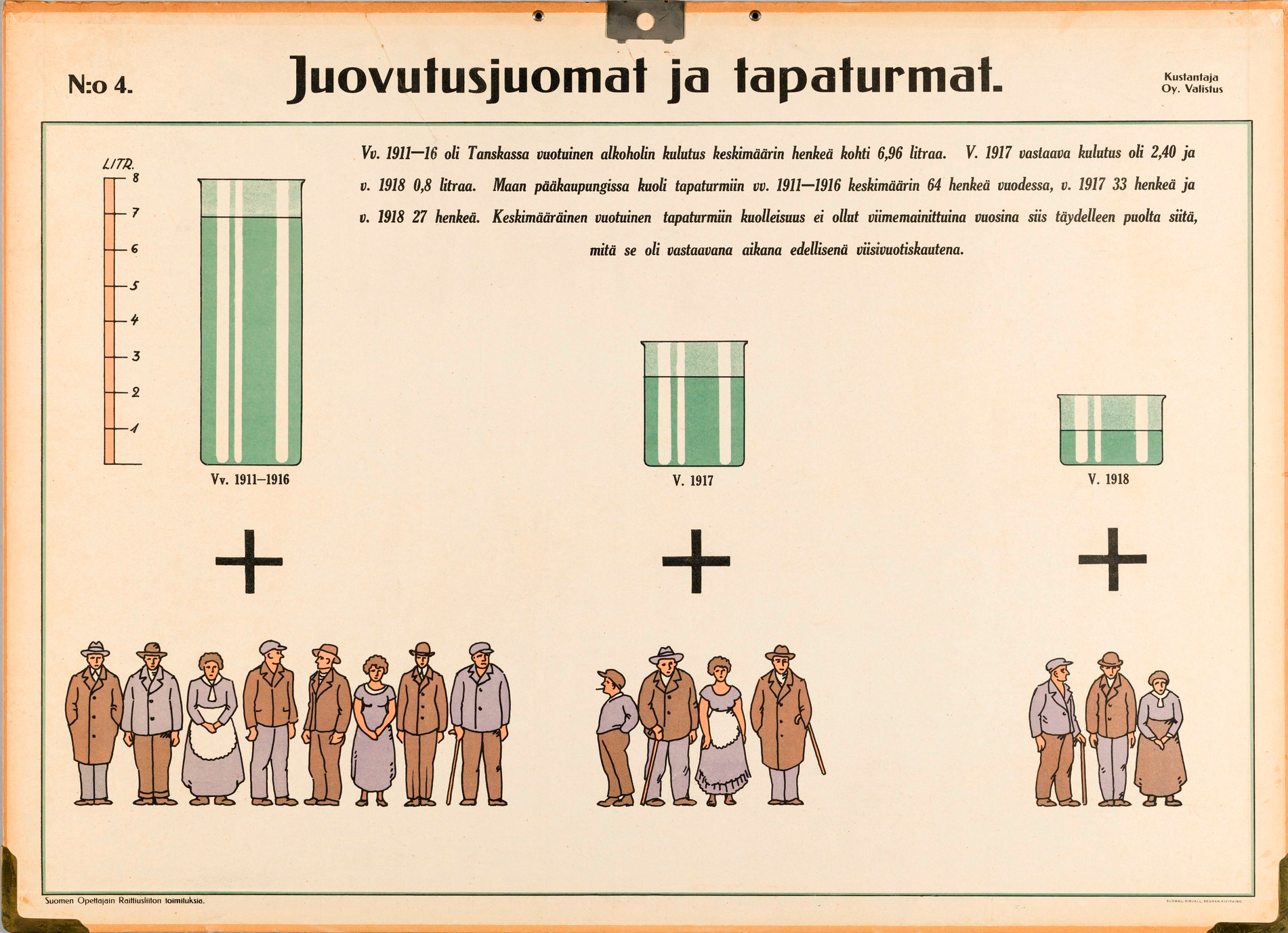 No. 4. Intoxicating beverages and accidents. Based on Danish data an average of 64 people died from accidents annually in the years 1911–1916, 33 people in 1917, and 27 people in 1918. Image courtesy of Helsinki City Museum.